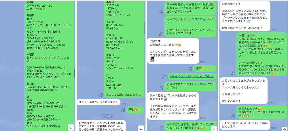 ベンチプレスをはじめとするBIG3、フリーウェイトトレーニングの使用重量向上、怪我をしにくいフォームが身に付きます。